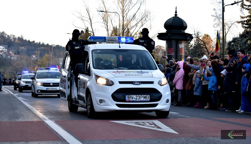 Pe Bulevardul Eroilor au defilat și forțele Ministerului Afacerilor Interne (Poliție, Jandarmerie, ISU) și chiar Poliția Locală Brașov, iar vehiculele și dotările erau mult mai noi.