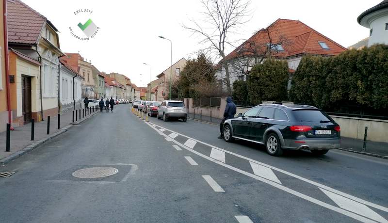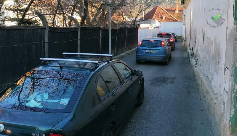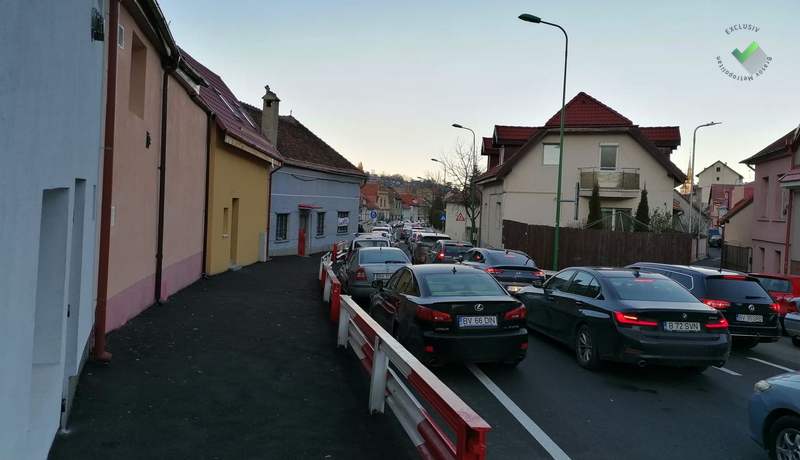 De altfel, ieri dupa-amiaza, în Șchei, pe sensul de coborâre, strada semăna, mai degrabă, cu o imensa parcare. Unele mașini erau stăteau cu motorul pornit, așteptând să mai meargă în metru, altele erau staționate pe marginea drumului.