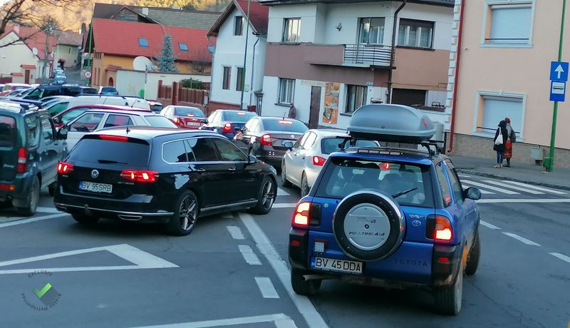 Tot pe Mureșenilor, traficul era sufocat și pe sensul de mers spre Livada Poștei. În principal, pentru că era coloana de mașini care cobora din Poiana Brașov, iar giratoriu din Livada Poștei nu făcea față.