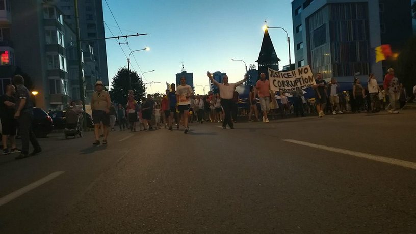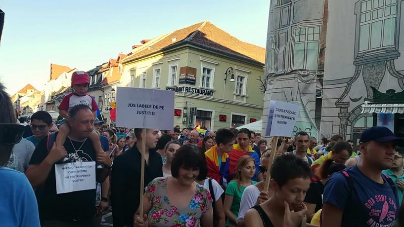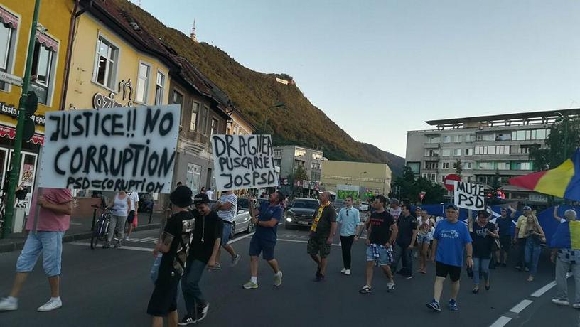 UPDATE 20.30 – peste 2000 de oameni se deplasează la această oră pe bd. 15 Noiembrie, coloana întinzându-se de la Patria până aproape de Hotelul Aro Palace, pe două din cele patru benzi ale străzii. Oamenii sunt înarmați cu pancarde pe care se pot citi mesajele „Jos labele de pe justiție“, „Dragnea pușcărie“ sau „Justice! No Corruption“. Pe Bd. 15 Noiembrie, protestatarii strigă „București, nu uita, Brașovu-i de partea ta“. În fața Tribunalului se scandează „Închisoare cu executare“, „Jos Guvernul“ și „Nu pleacăm, Rezistăm“