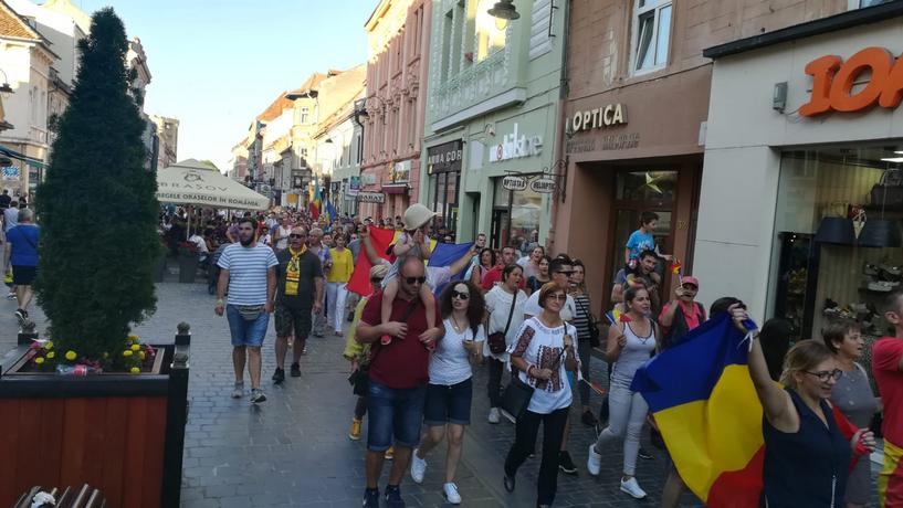 UPDATE 21.15 – Potrivit ultimelor estimări, grupul de protestatari a trecut de 4.000. Oamenii se îndreaptă dinspre bulevardul 15 Noiembrie spre Gară, pe strada Toamnei. Între intersecția Hărrmanului cu Toamnei și intersecția Hărmanului cu Victoriei circulația este blocată. Pe Victoriei, în zona în care au ajuns protestatarii, a fost blocat un sens de circulație.
