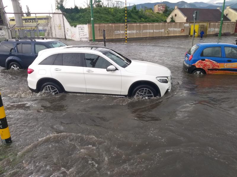 FOTO&VIDEO. Braşovul sub ape. A plouat pe versanţi, s-a inundat la Stadionul Tineretului