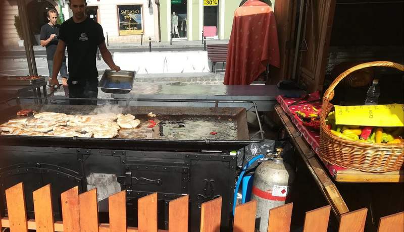 FOTO&VIDEO. Comerciantul care a reintrodus „moda” focului deschis în Piața Sfatului a ignorat sancțiunile primite de la Protecția Consumatorilor Brașov și a funcționat în continuare după propriile reguli