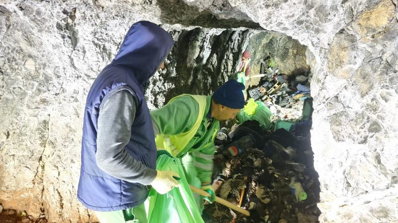 Cei care au luat parte la curăţarea zonei spun că au adunat 300 de saci de deşeuri, unele depozitate de mult timp în aceste catacombe, însă toate fiind o dovadă a trecerii oamenilor pe acolo. Mult plastic, PET-uri, doze şi sticle au fost scoase din grote. Nu au lipsit însă nici hainele uitate pe aici. De altfel, se ştie că mult timp, aceste grote au fost şi loc de „cazare” pentru oamenii străzii.