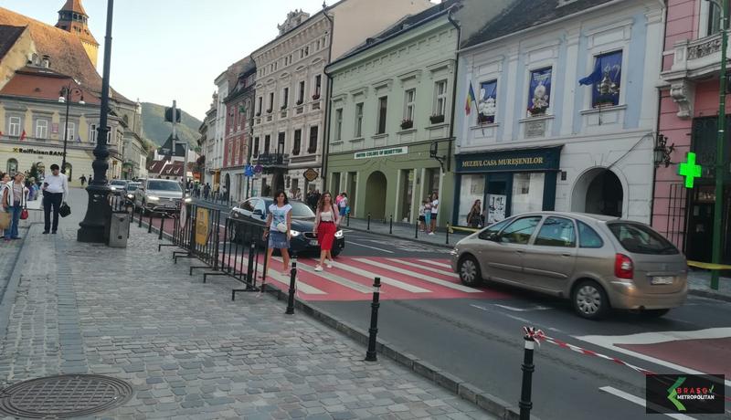 Chiar dacă a fost desființată de mai multe zile, vechea trecere de pietoni de pe strada Mureșenilor, de la mijlocul Pieței Sfatului este folosită și acum de brașoveni sau turiști.