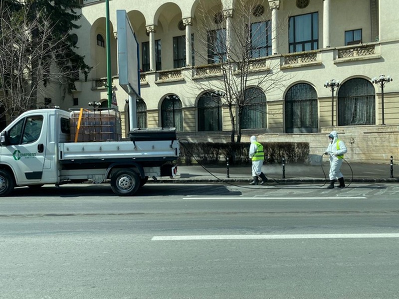 Potrivit reprezentanților Comprest străzile sunt mai întâi măturate manual și mecanic, după care sunt spălate cu spumă activă și clor. Spălare cu clor se face și în zonele pietonale unde există încă o circulație mai intensă în vederea dezinfecției, dar și la boxele de gunoi, unde pe lângă spălare, pe suprafața betonată/asfaltată se împrăștie și dezinfectant sub formă de praf.