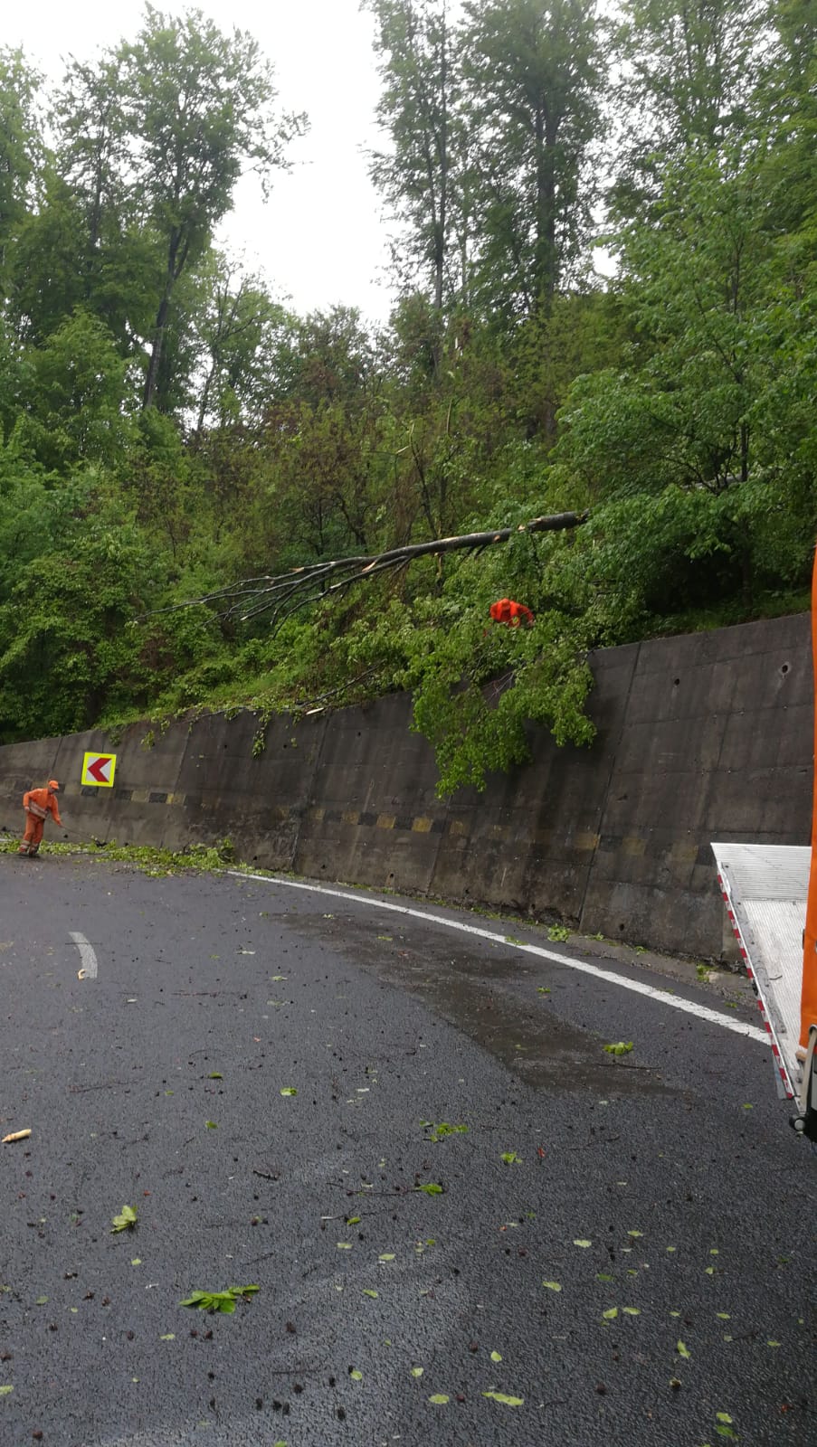 FOTO&VIDEO. DN13 blocat de copaci căzuți pe carosabil. Stâlpi de comunicații, doborâți de vijelie în județul Brașov