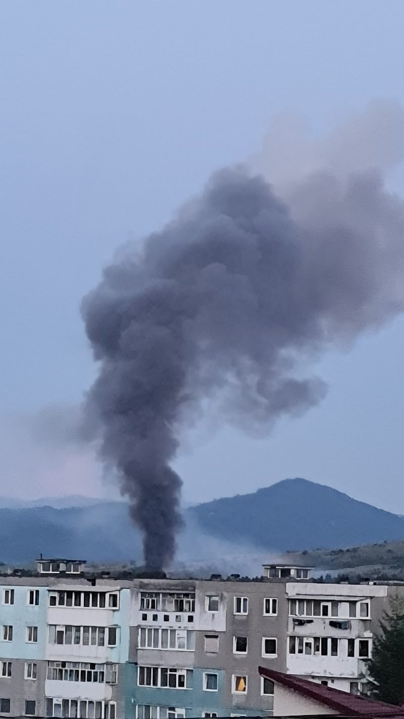 Incendiul a pornit la un container în care erau depozitate mai multe materiale sanitare. Acesta se manifestă cu degajare mare de fum care poate fi văzut de la câțiva kilometri distanță.