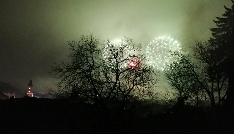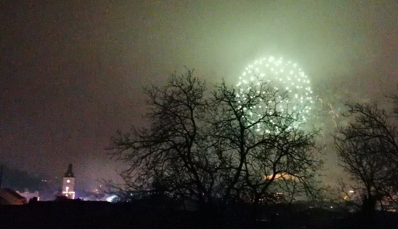 FOTO&VIDEO. În Brașov, oamenii au ieșit și pe „ploaia scoțiană” pentru a vedea focul de artificii din centrul orașului