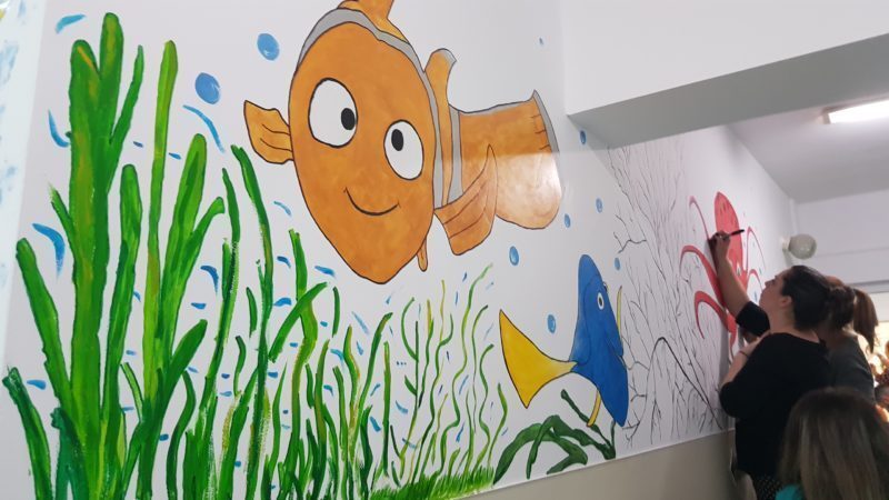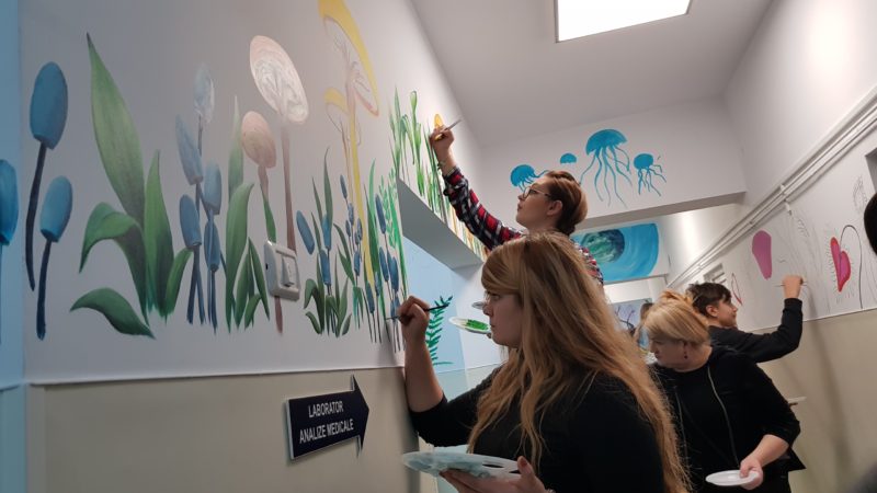 FOTO&VIDEO. O nouă față pentru policlinica Spitalului de Copii Brașov. Peste 80 de voluntari au pictat povești pe pereții ambulatoriului, făcând mai prietenoase spațiile în care vor veni pacienții