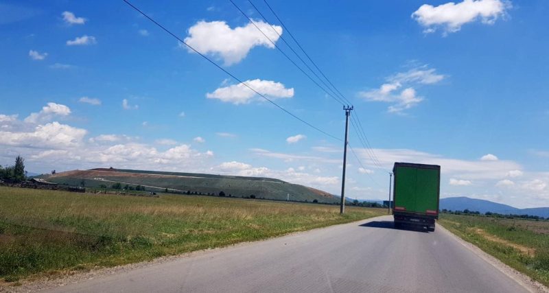 FOTO&VIDEO. Praful ridicat de maşinile de mare tonaj care circulă pe drumul de acces spre Depozitul Ecologic de Deşeuri nu mai este o problemă pentru braşoveni şi săceleni