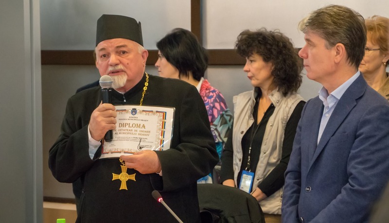 „Vă felicit pentru tot ceea ce faceţi în calitate de profesor la universitate şi de scriito dar şi în activitatea cultului pe care îl reprezentaţi în activitatea dumneavoastră“, a spus primarul Braşovului, george cripcaru, la înmânarea diplomei de onoare.