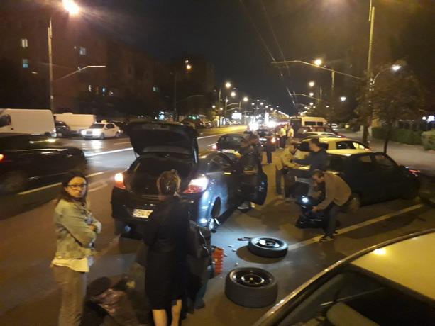La ora 20.30, nu mai puțin de șase șoferi care au trecut cu mașina prin zonă au tras pe dreapta, cu avariile puse, unii dintre ei având și cauciucurile sparte la mașini. Șoferii au sunat la 112, însă s-au înfuriat când un prim echipaj al Poliției Locale, pe care îl chemaseră să constate problema, a plecat mai departe.