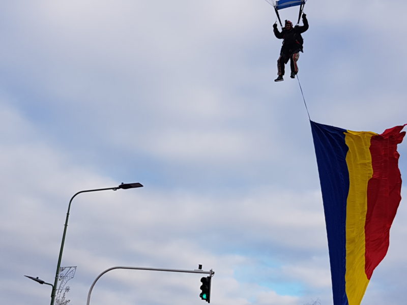 FOTO&VIDEO. Spectacol de 1 Decembrie, în centrul Brașovului. Aterizare la punct fix cu drapelul României, în fața a peste 7000 de oameni