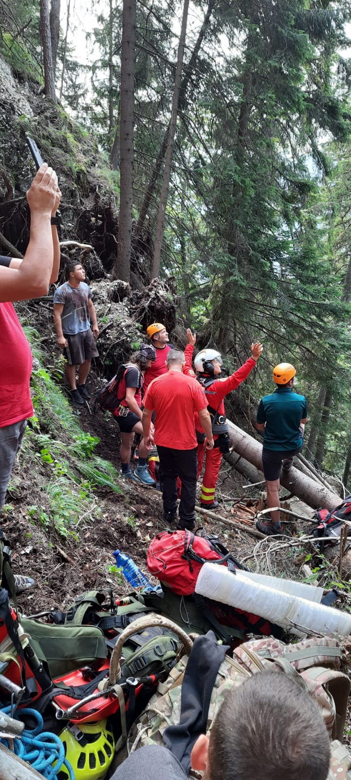 FOTO&VIDEO. Turist salvat din Piatra Craiului, după ce a căzut în gol de la 30 de metri. A fost nevoie și de intervenția unui elicopter SMURD. Salvator: „Nevoile fiziologice l-au împins într-o zonă periculoasă”