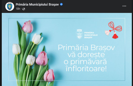 Primăria Brașov a vrut să facă un gest frumos de 1 Martie și a postat pe pagina de Facebook a instituției un cartonaș prin care urează „o primăvară frumoasă”.