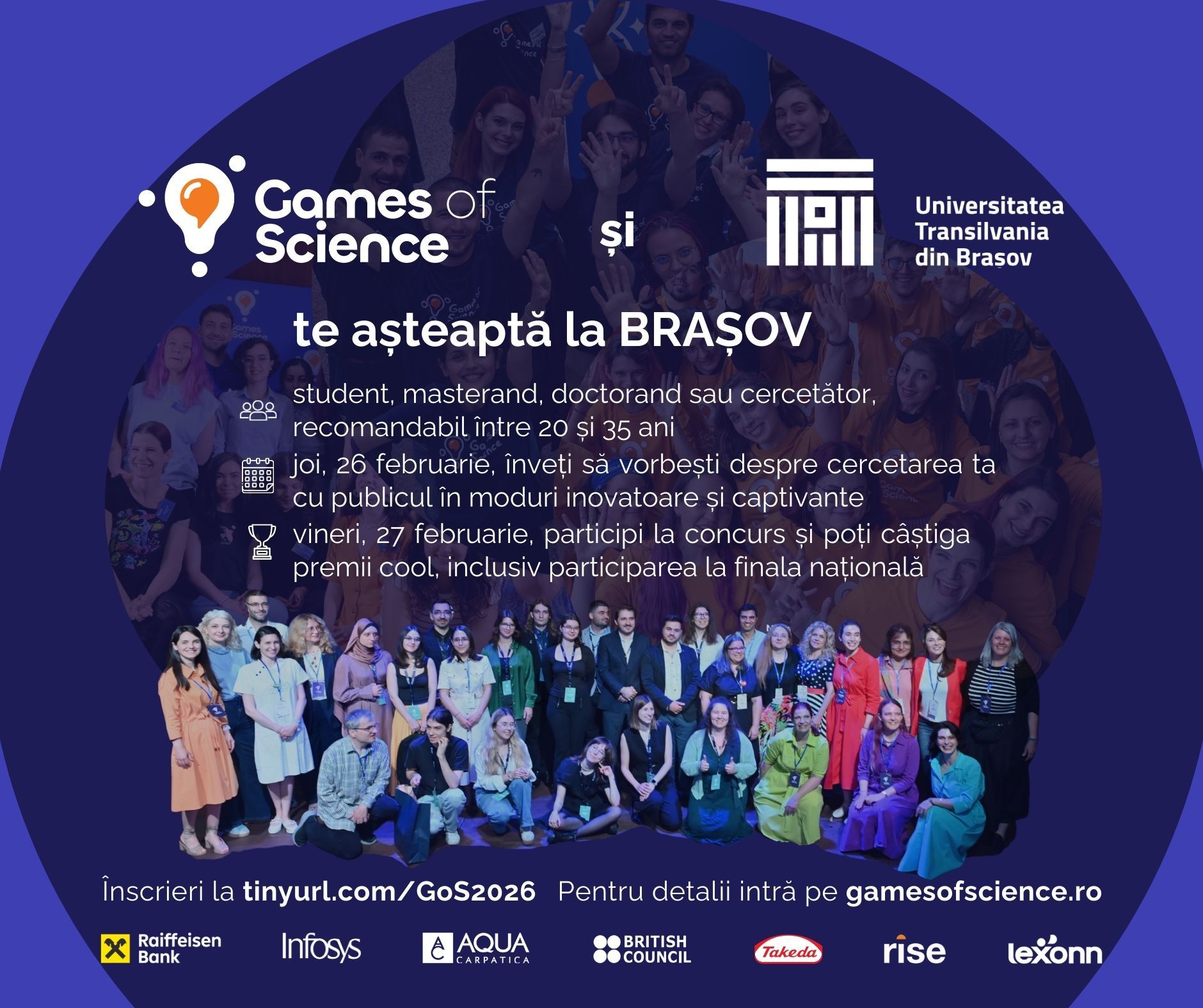 Programul este deschis studenților, masteranzilor, doctoranzilor și cercetătorilor din toate domeniile, cu vârste cuprinse, orientativ, între 20 și 35 de ani. Înscrierile se fac online, pe platforma gamesofscience.ro sau prin formularul dedicat, disponibil la tinyurl.com/GoS2026.