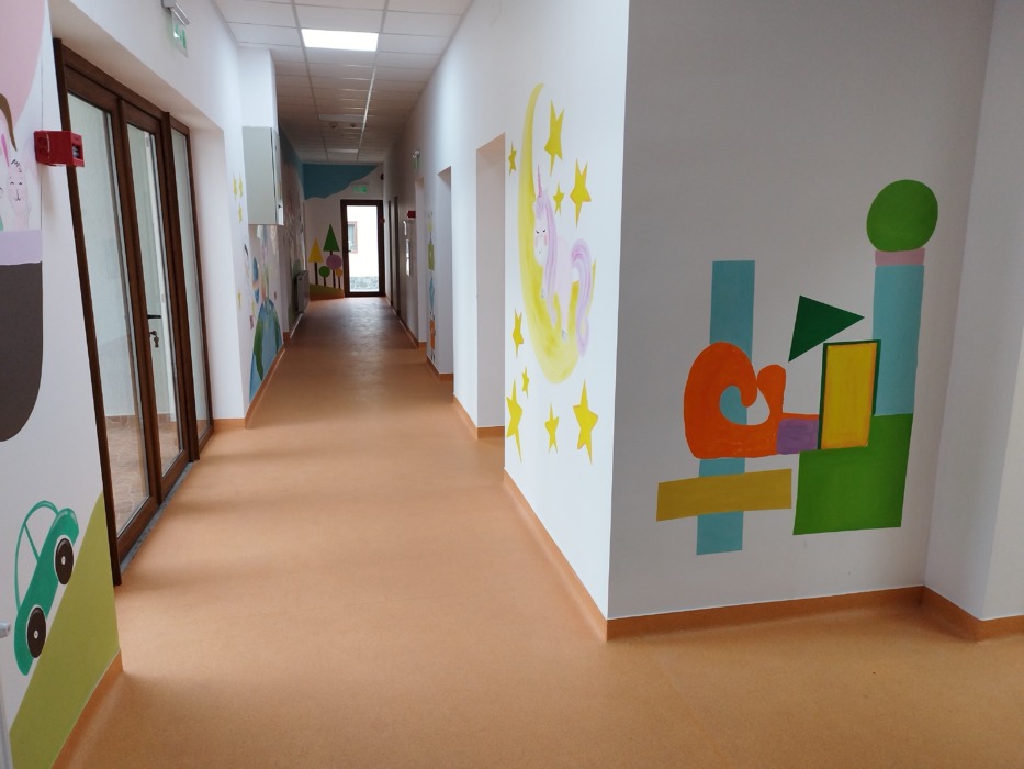 Clădirea are un spațiu multifuncțional, un vestiar, un cabinet medical, un izolator cu grup sanitar propriu, două grupuri sanitare pentru copii, un depozit, un oficiu, o terasă acoperită și una neacoperită. Constrycția ei, de la zero, a durat doi ani.
