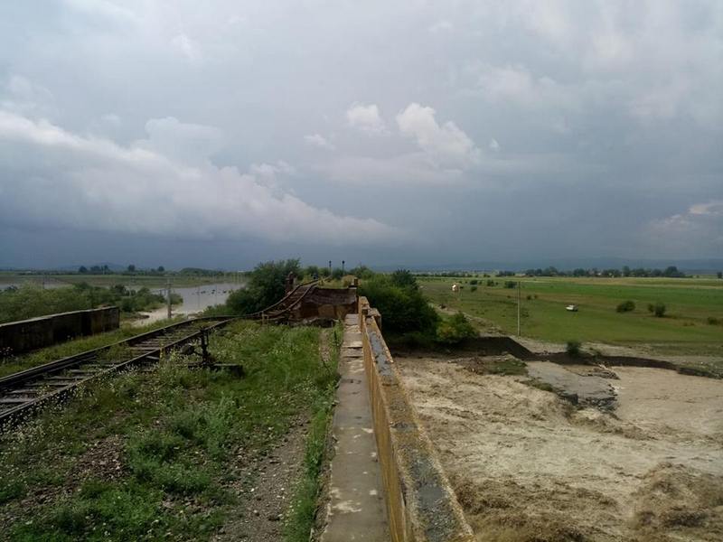 FOTO&VIDEO. Podul de cale ferată de la Budila s-a prăbușit din cauza viiturii. Circulația trenurilor, suspendată
