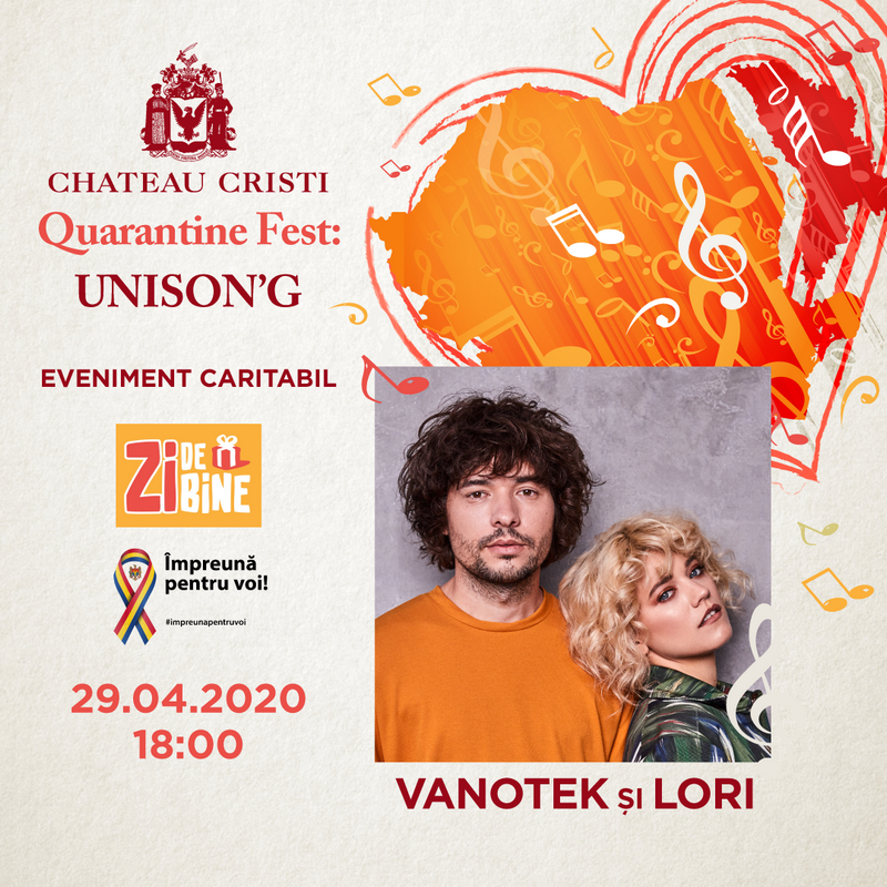 Festivalul online cu scop caritabil, Quarantine Fest: UNISON’G, va viza în același timp publicul din România cât și pe cel din Republica Moldova. Evenimentul se va desfășura LIVE, pe pagina de facebook a vinăriei Chateau Cristi și pe paginile partenerilor media.