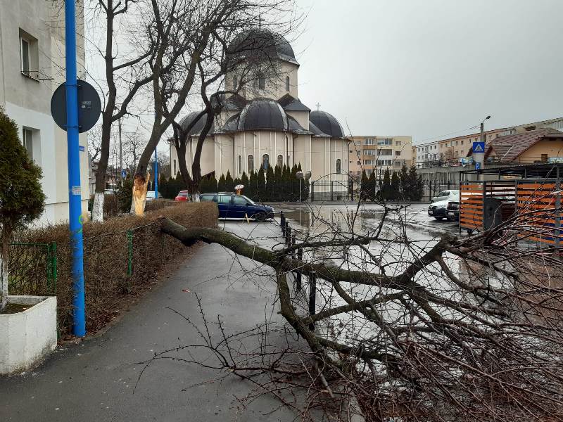 Astfel, un brad a căzut pe str. Uranus, între numerele 5-7, iar un arbore pe str. Cometei nr. 2.