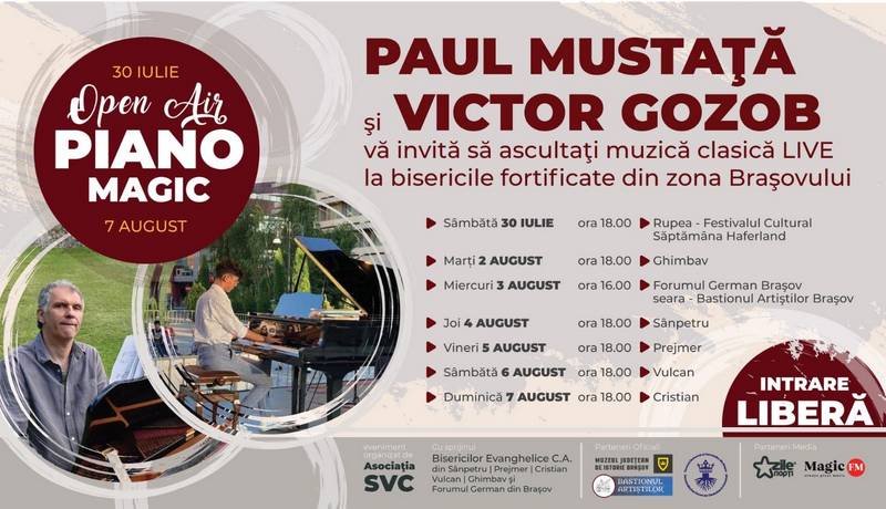 Profesorul Paul Mustaţă şi elevul lui favorit, Victor Gozob, vă invită astfel să ascultaţi muzică clasică la bisericile fortificate din zona Braşovului. Intrarea este liberă.
