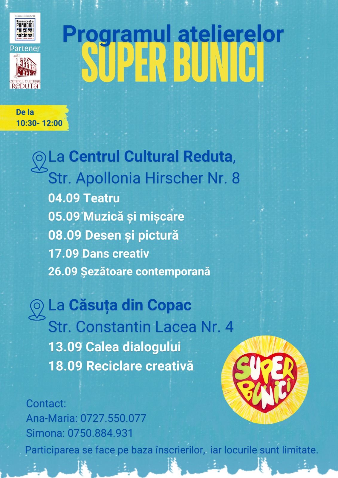 Proiectul „Super Bunici” revine cu o nouă ediție – 28 de ateliere și evenimente culturale pentru seniorii din Brașov. PROGRAMUL ATELIERELOR DIN SEPTEMBRIE