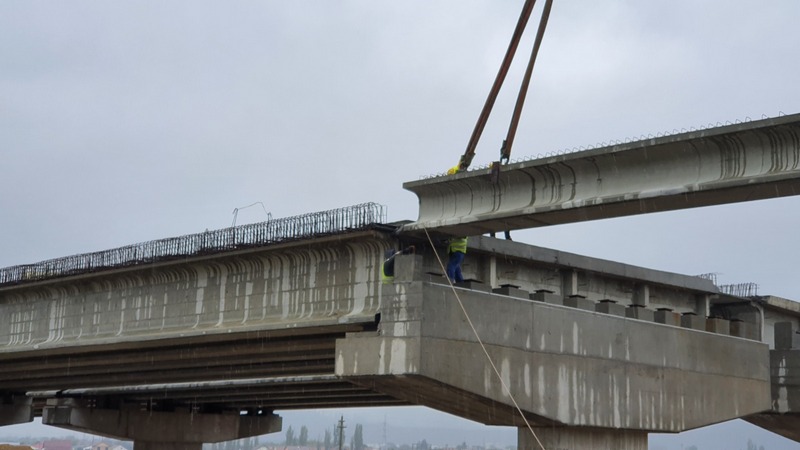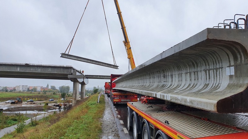 Montarea grinzilor la acest pasaj a început încă din această vară, la finele lunii iulie. Pasajul va avea, în total, 92 de grinzi cu lungimi cuprinse între 22 şi 36 de metri.