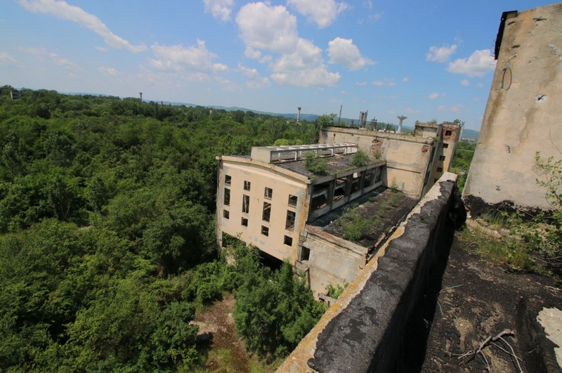 (Foto: Platforma Combinatului Chimic – cele două clădiri, înainte de demolare)